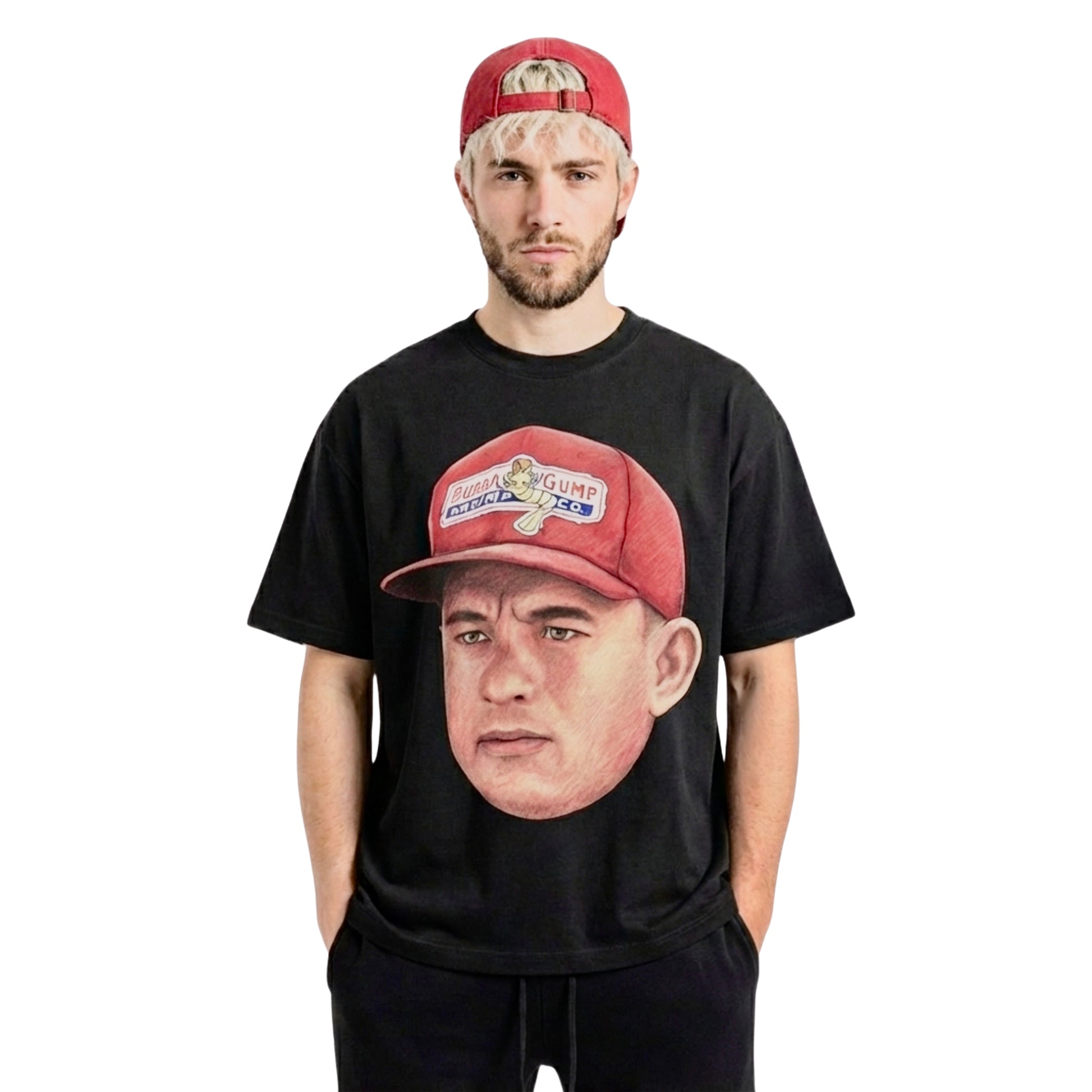 Cinematic Icon: Features a large, detailed portrait of Forrest Gump, perfectly capped with the recognizable Bubba Gump Shrimp Co. logo, bringing movie history to life.
