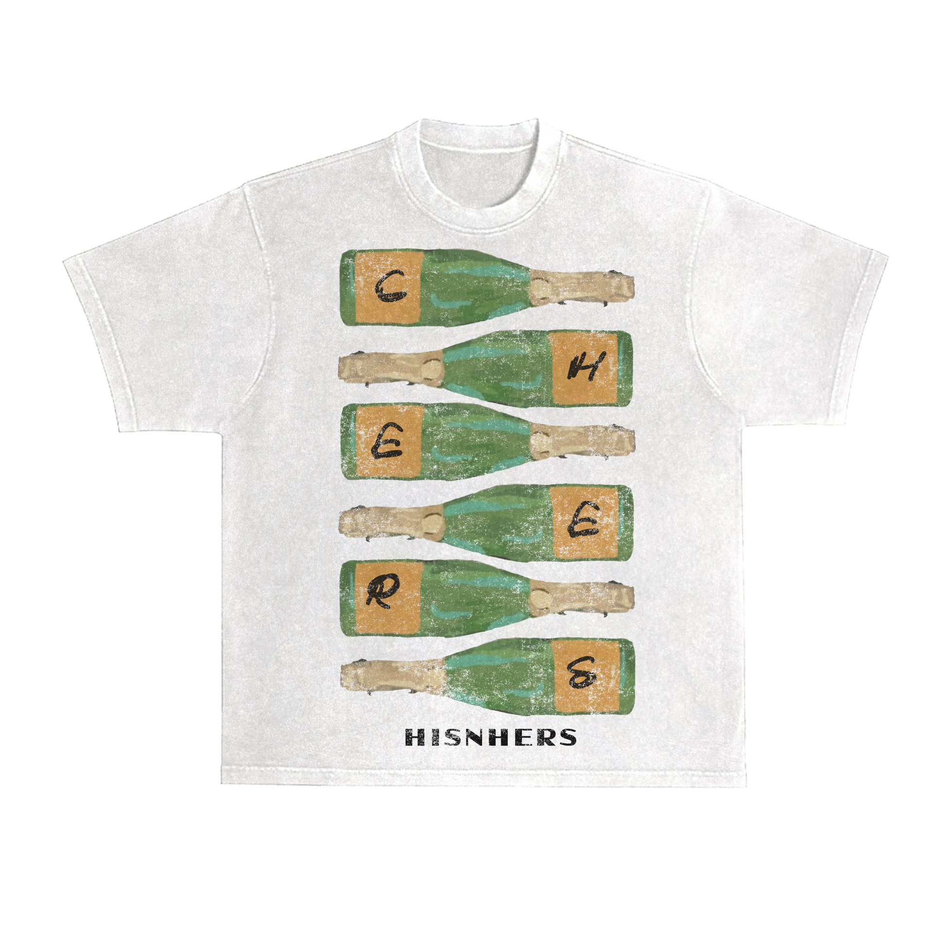 CHAMPAGNE 'CHEERS' RELAXED FIT T-SHIRT IN BLACK OR WHITE