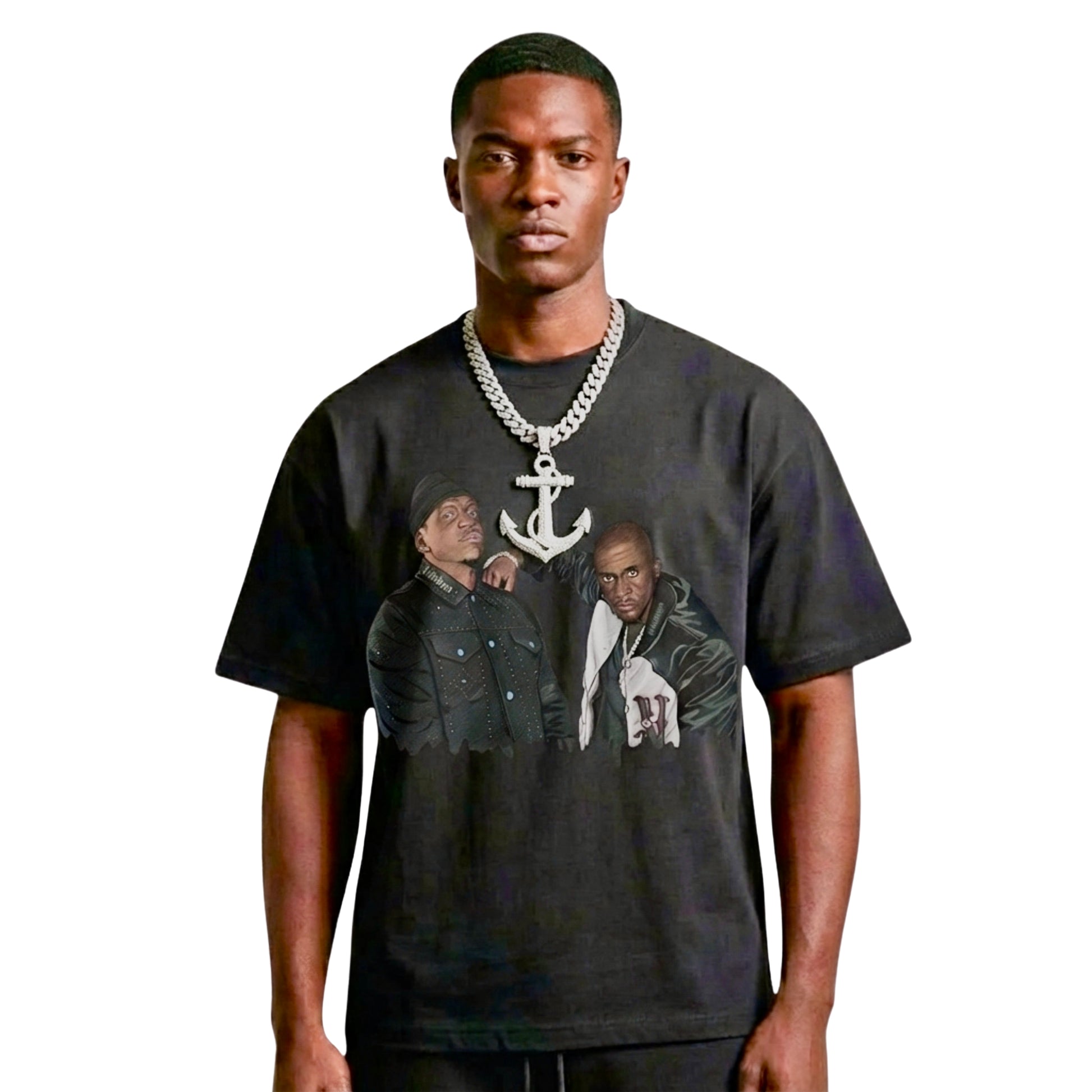 Celebrate the razor-sharp lyrics and effortless swagger of Clipse with this raw, impactful tribute tee. Featuring the iconic duo, Pusha T and Malice, this design captures the unmatched verbal precision and street-level honesty that made them legends. It's more than fabric; it’s a statement of hip-hop authenticity and high-end street culture.