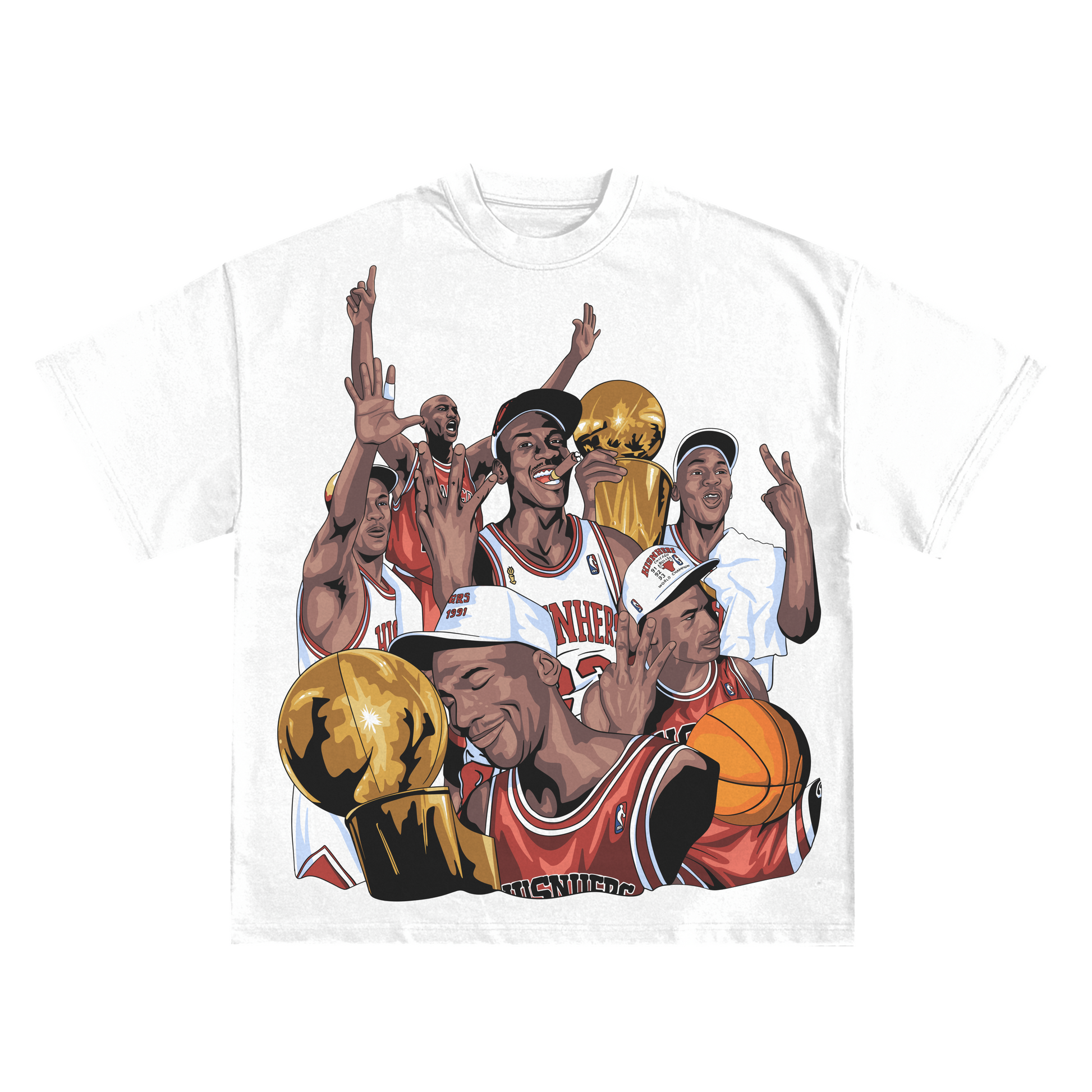 - JORDAN '6 RINGS' PRINT ON FRONT OF SHIRT, 6 FINALS SHOES ON BACK OF SHIRT